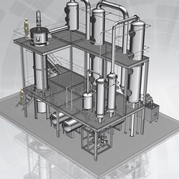 2、蒸餾系統:通過燒燃料油、燃氣等燃料將釜內廢機油在真空狀態加熱至工作溫度,同時釜內配有攪拌系統和保溫系統。